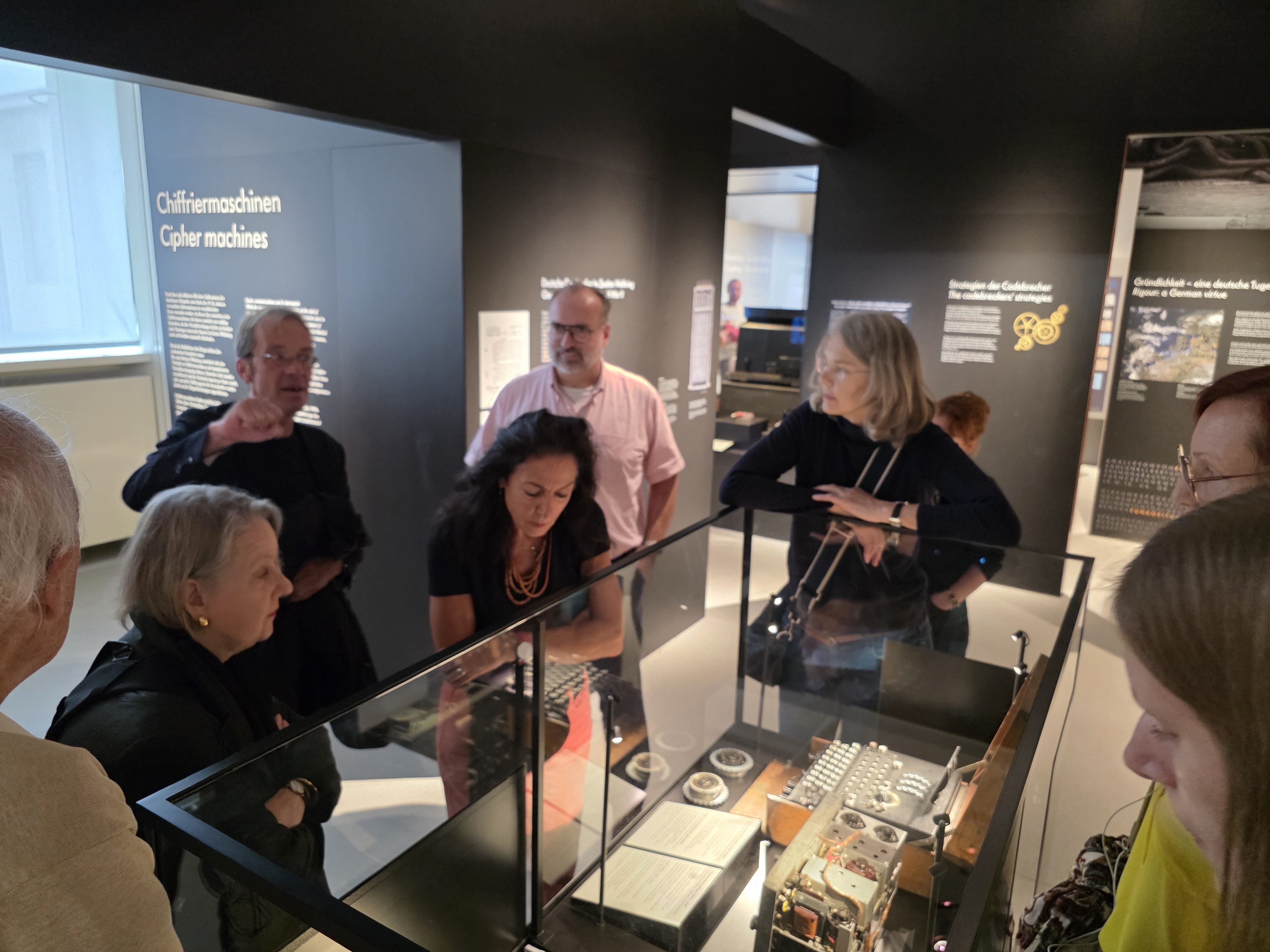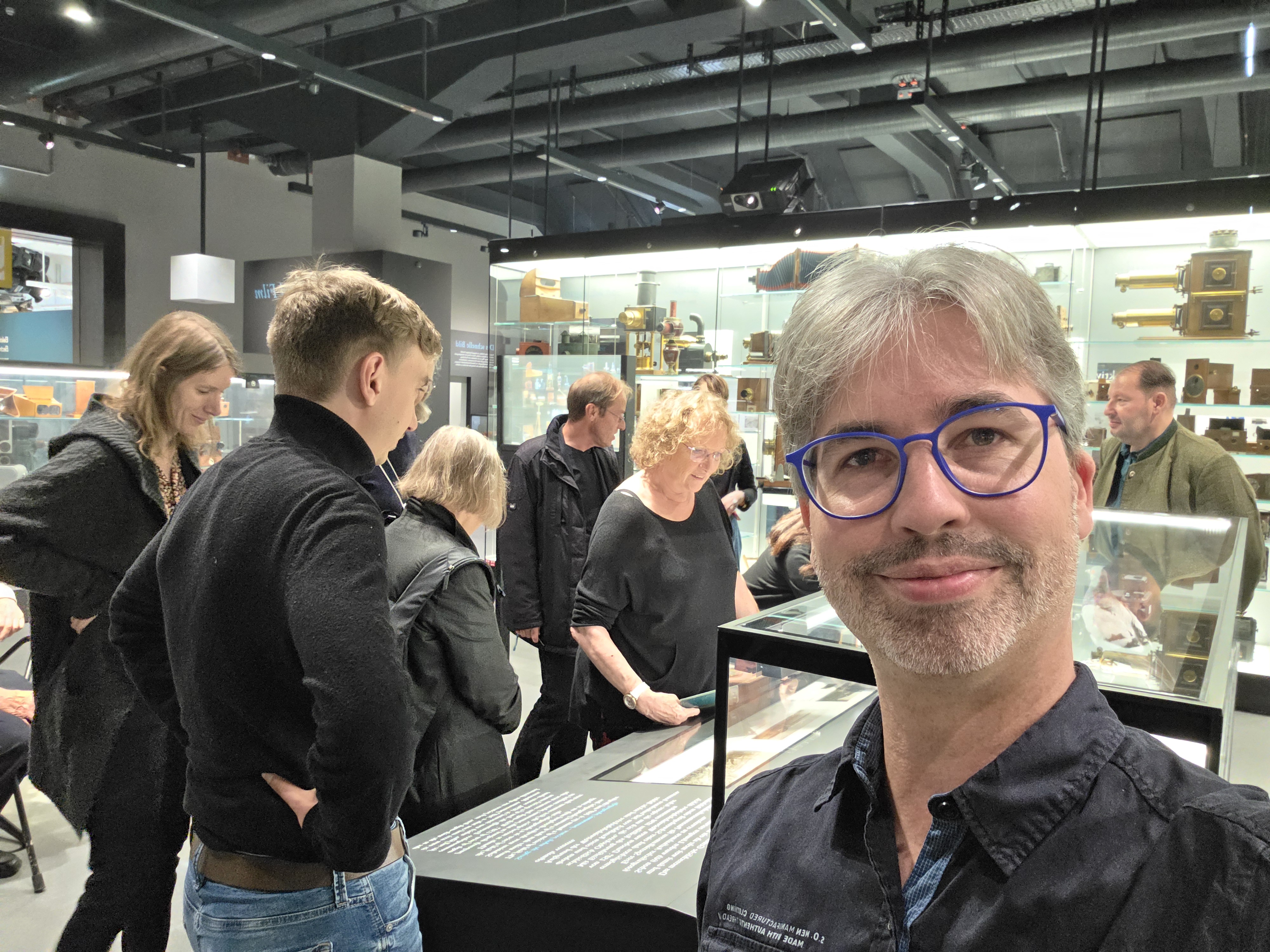 Das Sommerfest findet jährlich im Wechsel in München und Nürnberg statt. Nachdem dieses Jahr der FREItag, die zweite große Veranstaltung der Fachgruppe, in Nürnberg zu Gast war, stand für das Sommerfest München auf dem Programm. Die Fachgruppenvorstandsmitglieder Kathrin Elsner und Curdt Blumenthal hatten in Zusammenarbeit mit der Pressestelle des Museums eine Führung durch die Bereiche „Foto und Film“ sowie „Bild Schrift Codes“ organisiert. Die Führung übernahm Pressesprecher Gerrit Faust selbst – und hatte auch viele Informationen über seine Abteilung sowie die Kommunikationsarbeit des Museums parat. Auch über den laufenden Umbau und die Sanierungen, die bis 2028 stattfinden, wurde ausführlich gesprochen.